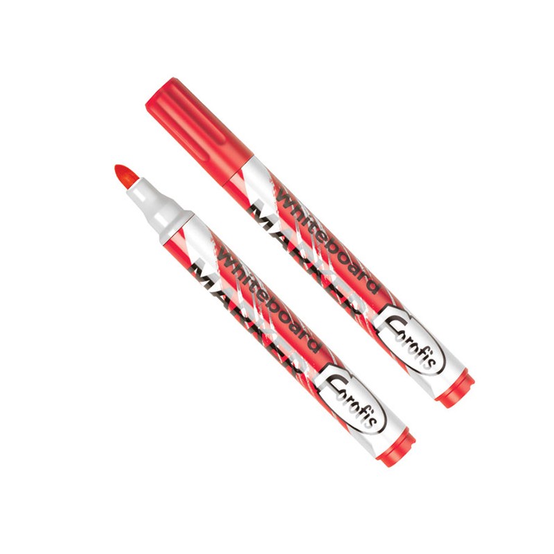 Marker Forofis, destinat utilizarii pe table whiteboard si flipcharturi, cu cerneala intensa de culoare rosie. Markerul are varful rotund, iar grosimea liniei de scriere este de aproximativ 3 mm. Cerneala poate fi stearsa usor cu ajutorul unui burete special. Markerul nu este toxic.