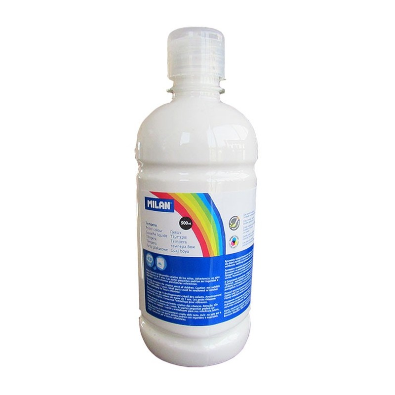Tempera pe baza de apa, de culoare alba, cu pigmenti de foarte buna calitate, in recipient de 500 ml. Tempera este solubila in apa, are un grad mare de acoperire si pot fi realizate nuante noi prin mixarea mai multor culori. Tempera poate fi aplicata pe diferite suprafete: hartie, carton, lemn, textile, sticla, panza, ipsos, teracota, metal sau plastic. Prin folosirea acestui produs se obtin picturi in culori luminoase, pline de vitalitate. Produsul se livreaza ambalat in recipient din plastic trans-parent, cu inchidere cu un capac prevazut cu picurator pentru utilizare usoara si curata. Se reco-manda a se agita recipientul inainte de utilizare. Tempera poate fi curatata foarte usor cu apa, si este lavabila de pe majoritatea materialelor textile. Produsul nu este toxic. Produsul este potrivit pentru copiii cu varsta mai mare de 3 ani.