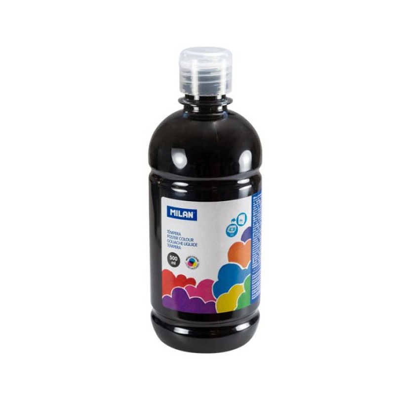 Tempera pe baza de apa, de culoare neagra, cu pigmenti de foarte buna calitate, in recipient de 500 ml. Tempera este solubila in apa, are un grad mare de acoperire si pot fi realizate nuante noi prin mixarea mai multor culori. Tempera poate fi aplicata pe diferite suprafete: hartie, carton, lemn, textile, sticla, panza, ipsos, teracota, metal sau plastic. Prin folosirea acestui produs se obtin picturi in culori luminoase, pline de vitalitate. Produsul se livreaza ambalat in recipient din plastic transparent, cu inchidere cu un capac prevazut cu picurator pentru utilizare usoara si curata. Se recomanda a se agita recipientul inainte de utilizare. Tempera poate fi curatata foarte usor cu apa, si este lavabila de pe majoritatea materialelor textile. Produsul nu este toxic. Produsul este potrivit pentru copiii cu varsta mai mare de 3 ani.