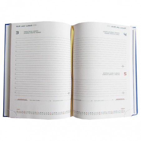 Agenda datata pentru anul 2026, partenerul ideal pentru organizarea zilnica, oferind un design ele-gant si functionalitate in acelasi timp. Agenda este conceputa pentru a satisface nevoile celor mai exigenti utilizatori, fiind perfecta atat pentru uz personal, cat si pentru mediul de afaceri. Agenda este disponibila in format A5 si contine un numar de 336 pagini. Agenda este realizata din hartie de culoare alba, din import, cu un gramaj de 70g/mp, asigurand o experienta de scriere placuta si fara pete de cerneala. Paginile agendei sunt imprimate in doua culori: gri inchis si rosu. Agenda este lipita si cusuta pe lateral, oferind durabilitate si rezistenta in utilizarea de zi cu zi. Agenda este structurata de urmatoarea maniera: pe primele pagini are rubrica pentru datele personale, calen-darele pentru anii 2026, 2027 si 2028, 10 pagini ce contin diverse informatii (ora pe glob, in-formatii telefonice, statele membre ale Uniunii Europene, prefixe telefonice internationale, sarba-tori religioase, unitati de masura si greutate). Pe ultimele pagini agenda contine 7 pagini pe care se pot nota diverse informatii de contact, telefoane si adrese si un atlas care contine harta Romaniei, harta Bucurestiului si harta lumii. Agenda este prevazuta cu un semn de carte de culoare aurie, pentru a va ajuta sa gasiti rapid ultima inregistrare. Finisarea cu folio confera un aspect premium. Copertile agendei sunt buretate, oferind astfel o senzatie placuta la atingere si protectie sporita pentru paginile interioare. Agenda are coperta de culoare albastra, un design clasic si profesional, care se potriveste in orice context. Dimensiunile agendei sunt urmatoarele: 14.5x20.5 cm (format finit), dimensiunile ideale pentru ca agenda sa fie usor de transportat, dar si suficient de in-capatoare pentru notite detaliate. Agenda A5 Artibest este mai mult decat un simplu instrument de organizare este o expresie a profesionalismului si a bunului gust. Cu aceasta agenda, aveti la in-demana un produs de inalta calitate care va va ajuta sa va indepliniti obiectivele zilnice cu stil si eficienta, indiferent ca sunteti la birou, acasa sau in deplasare.
