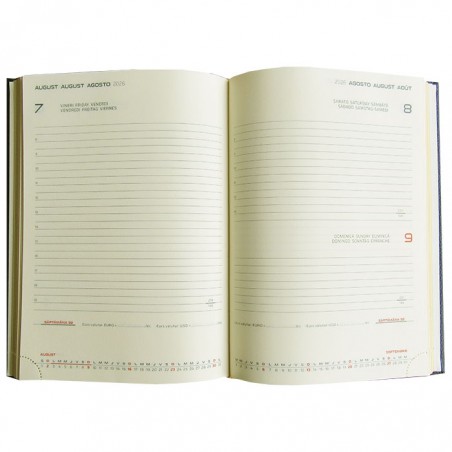 Agenda datata pentru anul 2026, disponibila in format A5, partenerul ideal pentru organizarea zilnica, in activitatile profesionale sau personale. Cu un design clasic si elegant, aceasta agenda este perfecta pentru a-ti pastra notitele, planurile si ideile intr-un mod ordonat si stilat. Agenda contine un numar de 352 pagini, asigurand astfel suficient spatiu pentru toate notitele tale im-portante. Agenda este realizata din hartie de culoare ivory, cu un gramaj de 70g/mp, ceea ce asig-ura o senzatie placuta la scris si asigura o experienta de inalta calitate. Foile agendei sunt aurite pe margine, pentru un aspect deosebit si elegant. Agenda este lipita si cusuta pe lateral. Finisarea cusuta si legata garanteaza durabilitate si o utilizare indelungata, iar semnul de carte integrat de culoare aurie, te va ajuta sa gasesti rapid pagina dorita. Agenda este structurata de urmatoarea ma-niera: pe prima pagina are rubrica pentru datele personale, calendarele pentru anii 2026, 2027 si 2028, 10 pagini ce contin diverse informatii (ora pe glob, informatii telefonice, statele membre ale Uniunii Europene, prefixe telefonice internationale, sarbatori religioase, unitati de masura si greu-tate). Pe ultimele pagini agenda contine 7 pagini pe care se pot nota diverse informatii de contact, telefoane si adrese si un atlas care contine harta Romaniei, harta Bucurestiului si harta lumii. Coperta agendei este buretata, realizata din material de foarte buna calitate, tip imitatie piele, ceea ce o face placuta la atingere, si ii ofera o protectie suplimentara. Agenda este cusuta pe margine. Finisarea cusuta si legata confera o rezistenta sporita. Anul este imprimat pe coperta prin timbru sec, ceea ce adauga un detaliu distinctiv acestei agende. Agenda are coperta de culoare fucsia, oferindu-i astfel un aspect elegant si rafinat. Dimensiunile agendei sunt urmatoarele: 14.5x20.5 cm (format finit), fiind usor de transportat si de folosit in orice situatie. Alege agenda Dakota A5 pentru a-ti organiza zilele intr-un mod eficient si stilat, beneficiind de o calitate premium si un de-sign sofisticat.