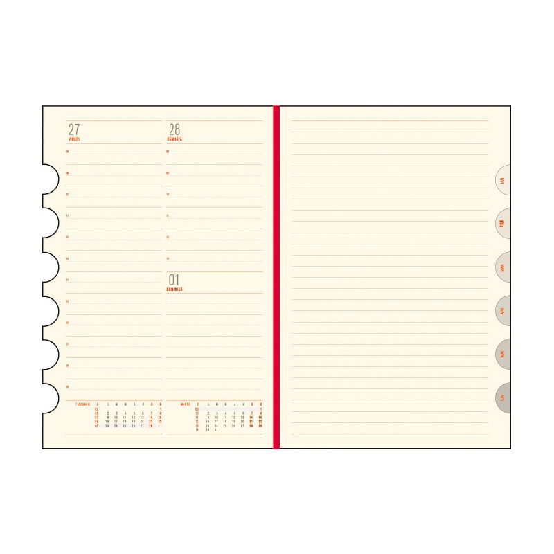 Agenda datata pentru anul 2026, disponibila in format A5, partenerul ideal pentru organizarea zilnica, in activitatile profesionale sau personale. Cu un design clasic si elegant, aceasta agenda este perfecta pentru a-ti pastra notitele, planurile si ideile intr-un mod ordonat si stilat. Agenda contine un numar de 392 pagini, asigurand astfel suficient spatiu pentru toate notitele tale im-portante. Agenda este realizata din hartie offset ivory, cu un gramaj de 70g/mp, ceea ce asigura o senzatie placuta la scris si asigura o experienta de inalta calitate. Paginile agendei sunt imprimate in doua culori: rosu si gri. Agenda este structurata de urmatoarea maniera: pe prima pagina are ru-brica pentru datele personale, calendarele pentru anii 2026 si 2027 si 4 pagini ce contin anul 2026 sub forma tabelara. Pe ultimele pagini agenda contine 7 pagini cu harti color, perfecte pentru cala-tori sau pentru cei care doresc sa aiba mereu o referinta geografica la indemana. Agenda este prevazuta cu un semn de carte integrat de culoare rosie, care te va ajuta sa gasesti rapid pagina dorita. Agenda este stantata tip index cu lunile anului, ceea ce asigura o cautare usoara si o utiliz-are eficienta. Colturile agendei sunt rotunjite, adaugand astfel un plus de eleganta. Coperta agendei este buretata, realizata din material de foarte buna calitate, tip imitatie piele, ceea ce o face placuta la atingere, si ii ofera o protectie suplimentara. Finisarea cusuta si legata confera o rezistenta spori-ta. Agenda are coperta de culoare albastra. Coperta agendei permite persoanalizare tip folio sau timbru sec. Dimensiunile agendei sunt urmatoarele: 16x23.5 cm (format finit), fiind usor de trans-portat si de folosit in orice situatie. Alege agenda A5 Office Ego pentru a-ti organiza zilele intr-un mod eficient si stilat, beneficiind de o calitate premium si un design sofisticat.