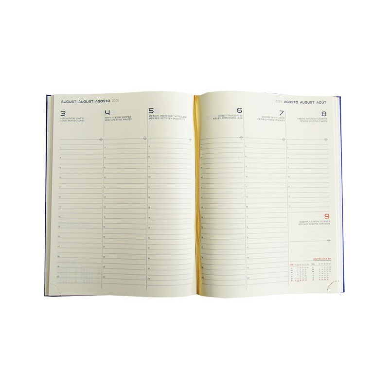 Agenda Artilux pentru anul 2026, in format A4, datata saptamanal, o agenda eleganta si function-ala, alegerea ideala pentru cei care apreciaza organizarea si calitatea superioara. Cu pagini datate, agenda te ajuta sa iti planifici cu usurinta activitatile zilnice, saptamanale si lunare, devenind astfel ideala pentru notite, planificarea intalnirilor sau activitatilor. Agenda contine un numar de 144 pagini, fiind realizata din hartie de culoare ivory, cu un gramaj de 70g/mp, pentru o experienta de scris placuta si eleganta. Paginile agendei sunt imprimate in doua culori: rosu si gri inchis. Agenda este structurata de urmatoarea maniera: pe primele pagini contine rubrica pentru datele personale, urmata de calendarul pentru anii 2026, 2027 si 2028, 12 pagini ce contin diverse informatii (ora pe glob, informatii telefonice, statele membre ale Uniunii Europene, prefixe telefonice internationale, distante intre principalele orase din tara si din Europa, sarbatori religioase, unitati de masura si greutate). Pe ultimele pagini agenda contine 21 pagini pe care se pot nota diverse informatii de contact, telefoane si adrese. Agenda contine si 3 harti color (harta Romaniei, harta Bucurestiului si harta lumii), perfecte pentru calatori sau pentru cei care doresc sa aiba mereu o referinta geografica la indemana. Agenda este prevazuta cu un semn de carte de culoare aurie, pentru a te ajuta sa gas-esti rapid pagina dorita. Copertile agendei sunt buretate, realizate din material de foarte buna cali-tate, tip imitatie piele. Coperta de culoare maro adauga un aspect elegant si o protectie suplimenta-ra. Agenda este lipita si cusuta pe lateral. Finisata cu atentie prin cusatura si legare, agenda benefi-ciaza de o rezistenta sporita si o durabilitate remarcabila. Finisajul tip folio adauga un detaliu dis-tinctiv acestei agende. Cu un format finit de 20.5x26.5 cm, aceasta agenda este perfecta pentru no-tite detaliate si planuri bine structurate. Agenda Artilux A4 este mai mult decat un simplu instru-ment de organizare este un partener de incredere pentru oricine doreste sa ramana organizat si stilat in acelasi timp.