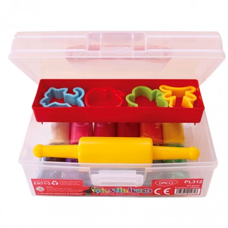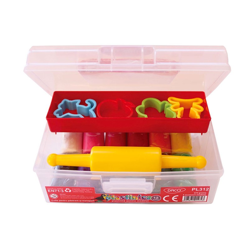 Setul de plastilina Plastinica Daco este setul ideal pentru copiii care iubesc sa creeze si sa-si ex-prime imaginatia prin joaca manuala. Cu 12 culori vesele si o plastilina usor de modelat, acest set este perfect pentru ore intregi de distractie educativa. Setul con?ine 12 batoane de plastilina, in culo-ri diverse si intense, fiecare de cate 31 grame. Mai mult, setul include 5 accesorii pentru modelaj: unelte si forme variate. Plastilina este moale, flexibila si non-toxica. Fiind ambalata intr-o cutie practica din plastic, ideala pentru depozitare si transport, plastilina devine o activitate perfecta pentru utilizare repetata si diversificata. Setul de platina este un set complet ?i colorat, care incura-jeaza dezvoltarea dexteritatii si imaginatiei, fiind ideal pentru a fi folosit in cadrul activitatilor de acasa, de la gradinita sau de la scoala.