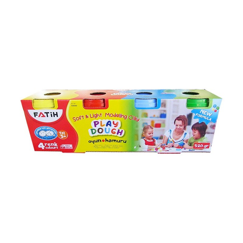 Plastilina Fatih, de foarte buna calitate, intr-o textura moale, ce nu se lipeste pe maini. Plastilina este potrivita pentru dezvoltarea creativitatii copiilor, in cadrul orelor de lucru manual de la scoala si gradinita sau acasa. Plastilina se livreaza ambalata in 4 borcane de plastic, in culoarea plastil-inei: verde, albastru, galben si rosu. Produsul nu este toxic.