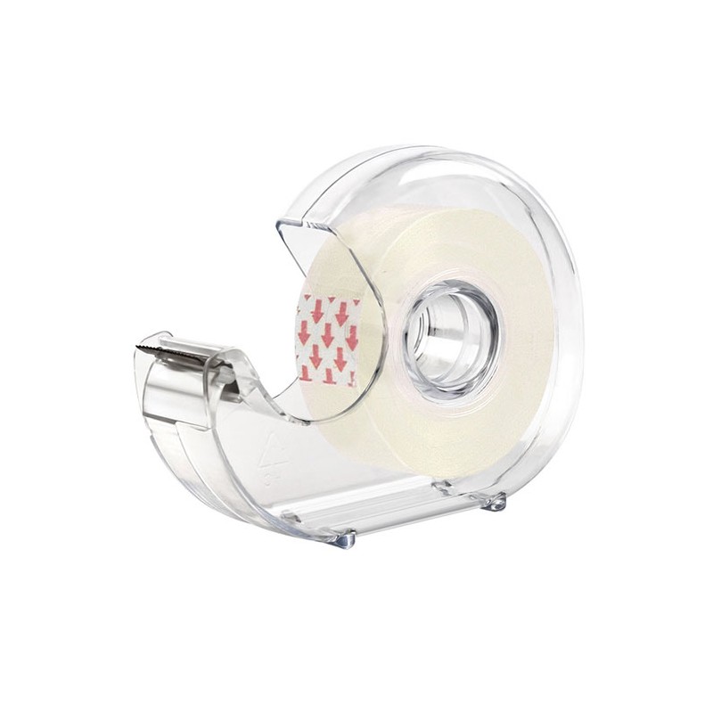 Dispenser pentru benzi adezive de dimensiuni mici: 19mmx10m sau 19mmx33m. Dispenserul este fabricat din material plastic transparent, ceea ce permite un mai bun control asupra cantitatii de banda ramasa. Dispenserul se livreaza impreuna cu o banda adeziva transparenta.