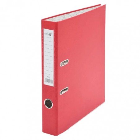 Biblioraft pentru uz zilnic, realizat din carton rigid plastifiat cu polipropilena la exterior si mecanism metalic nichelat de inalta calitate, disponibil in formatul universal A4. Biblioraftul este indispensabil pentru orice birou, venind in intampinarea nevoilor de contabilitate, administrare sau sistematizare. Coperta este plastifiata cu polipropilena (PP) la exterior, iar la interior coperta este acoperita cu hartie alba. Biblioraftul este prevazut cu eticheta de carton interschimbabila pe cotor, pentru personalizare. Biblioraftul este echipat cu orificiu metalic de prindere si sina metalica protectoare la baza, pentru o manevrare facila si sigura. Latimea cotorului este de 5 cm. Biblioraftul este disponibil pe varianta de culoare: rosu.