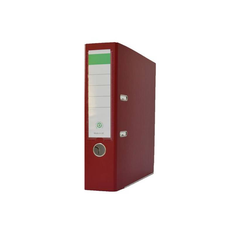 Biblioraft universal, de calitate foarte buna, un produs extrem de practic, disponibil in formatul universal A4. Biblioraftul este indispensabil pentru orice birou, venind in intampinarea nevoilor de contabilitate, administrare sau sistematizare. Biblioraftul este plastifiat doar la exterior. Biblioraftul este dotat cu un buzunar transparent pentru etichete, si orificiu de prindere, amplasate pe cotor. Biblioraftul este dotat cu o sina metalica. Latimea cotorului este de 8 cm. Biblioraftul este disponibil pe varianta de culoare grena. Ambalare: 20 bucati/cutie.