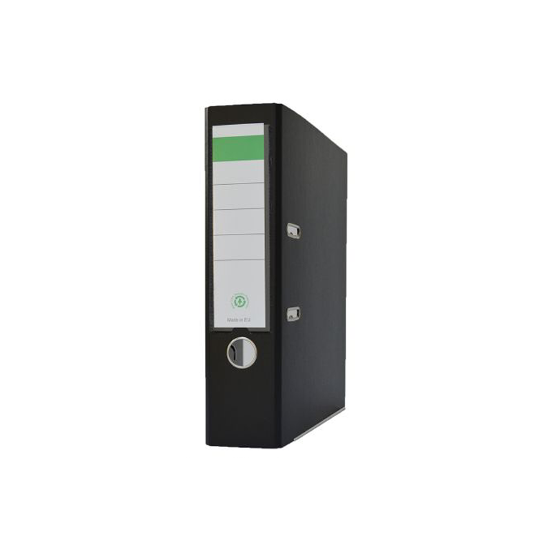 Biblioraft universal, de calitate foarte buna, un produs extrem de practic, disponibil in formatul universal A4. Biblioraftul este indispensabil pentru orice birou, venind in intampinarea nevoilor de contabilitate, administrare sau sistematizare. Biblioraftul este plastifiat doar la exterior. Biblioraftul este dotat cu un buzunar transparent pentru etichete, si orificiu de prindere, amplasate pe cotor. Biblioraftul este dotat cu o sina metalica. Latimea cotorului este de 8 cm. Biblioraftul este disponibil pe varianta de culoare negru. Ambalare: 20 bucati/cutie.