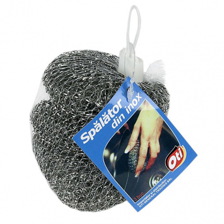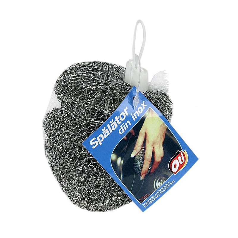 Buretele de vase din inox Oti este ideal pentru indepartarea grasimilor arse si a murdariei persistente. Avand o structura rezistenta, buretele de vase din inox Oti este foarte eficient in bucatarie sau la gratar. Buretii de vase din inox Oti sunt ambalati in seturi de 3 bucati. Unitate de vanzare: set.