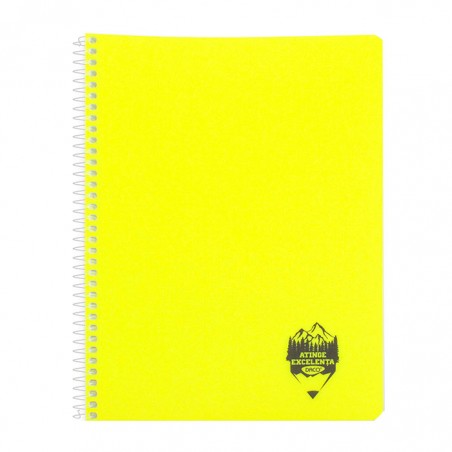 Caiet in format A4, cu un numar de 144 file si liniatura tip dictando (linii), un caiet intr-un design atragator, de foarte buna calitate. Coperta caietului este realizata din polipropilena, ceea ce il face mai flexibil si rezistent, precum si usor de curatat. Hartia din interior este de calitate superioara, cu un gramaj de 70 g/mp. Colturile caietului sunt rotunjite. Caietul este prevazut cu spire mari, realiza-te din plastic transparent. Caietul este realizat intr-un design modern si atragator, dar este in acelasi timp rezistent si usor de transportat.