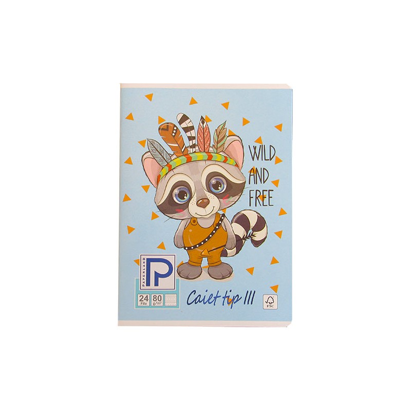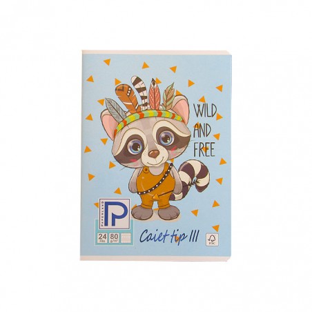 Caiet tip 3 pentru scolarii initiati in ale scrisului, dar care au inca nevoie de a-si perfectiona abilita-tile de scriere. Caietul este in format A5 si cuprinde un numar de 24 file. Coperta caietului este real-izata din carton, in diverse modele. Hartia caietului este de calitate superioara, cu un gramaj de 80 g/mp.