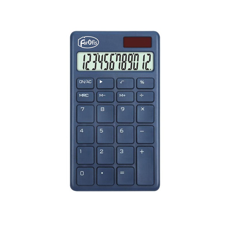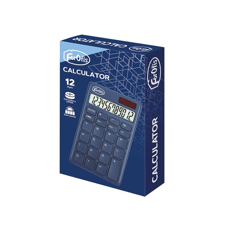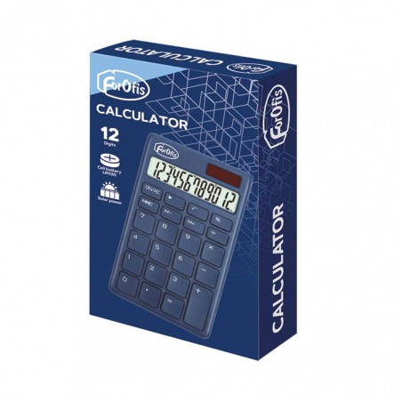 Calculator de birou in culoarea albastru inchis, cu display LCD ce afiseaza 12 digiti. Acest calcula-tor dispune de o alimentare duala: baterie LR1130 si celula solara. In conditii de iluminare normala, calculatorul este alimentat de celula solara. Daca iluminarea scade sub un anumit nivel, alimentarea va fi asigurata de baterie. Calculatorul este prevazut cu picioruse de cauciuc contra alunecarii. Di-mensiunile calculatorului sunt urmatoarele: 139x80x15mm.