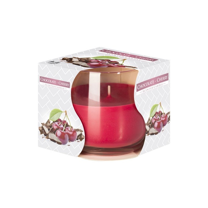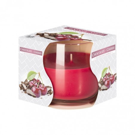 Lumanare parfumata in pahar transparent de sticla, Bispol Ciocolata-Visina, SN71-104
