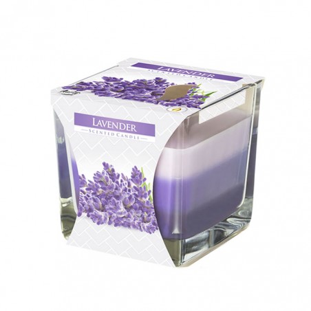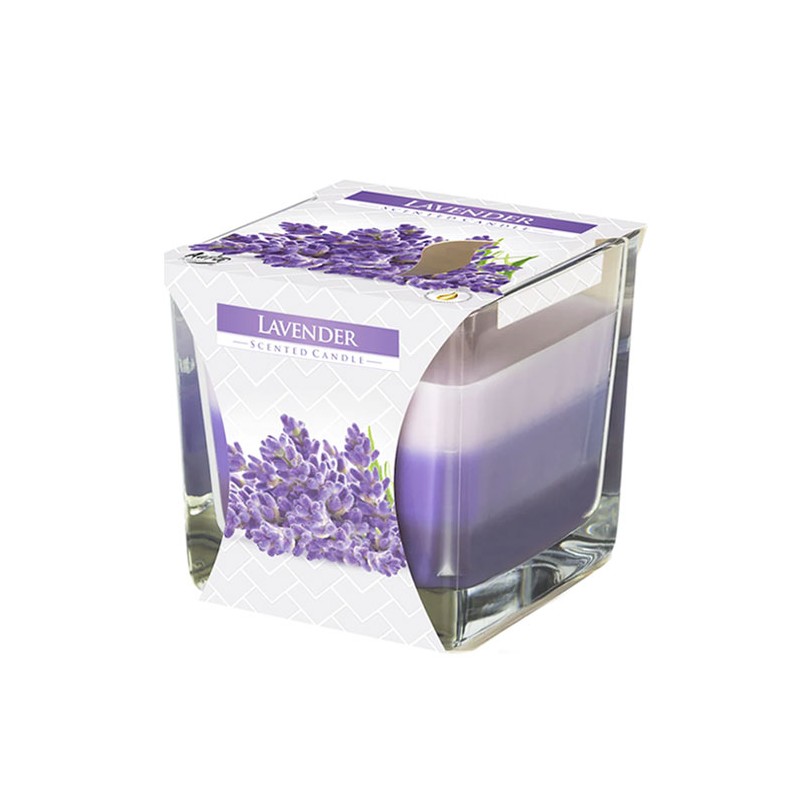 Lumanare parfumata in pahar transparent de sticla, Bispol, SNK80-79, lavanda, 80x80 mm