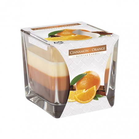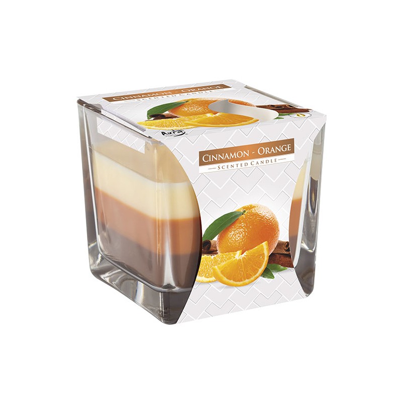 Lumanare parfumata in pahar transparent de sticla, Bispol, Scortisoara si Portocale, SNK80-159, 80x80 mm