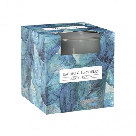 Lumanare parfumata in pahar transparent de sticla, Frunze de dafin si Mure