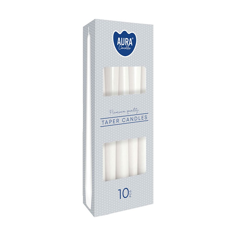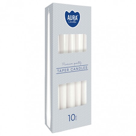 Set lumanari conice Bispol Aura Albe, S30-090, 10 bucati