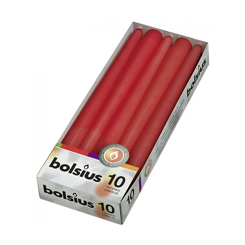 Lumanarea conica decorativa Bolsius va asigura o atmosfera placuta si primitoare si un ambient linistitor. Lumanarea are inaltimea de 24.5 cm si diametrul de 2.4 cm. Lumanarea are un aspect placut, datorita formei conice si a culorii parafinei. Timpul de ardere al lumanarii este de aproximativ 7.5 ore si depinde de conditiile atmosferice si de modul de utilizare. Se recomanda utilizarea unui suport adecvat pentru lumanare si amplasarea acesteia in locuri sigure departe de obiecte care pot lua foc. Se recomanda a nu se lasa lumanarea la indemana copiilor sau in apropierea animalelor de companie. Se recomanda a se respecta instructiunile si simbolurile de pe eticheta. Produsul se livreaza amabalat in cutie, ce contine 10 lumanari.