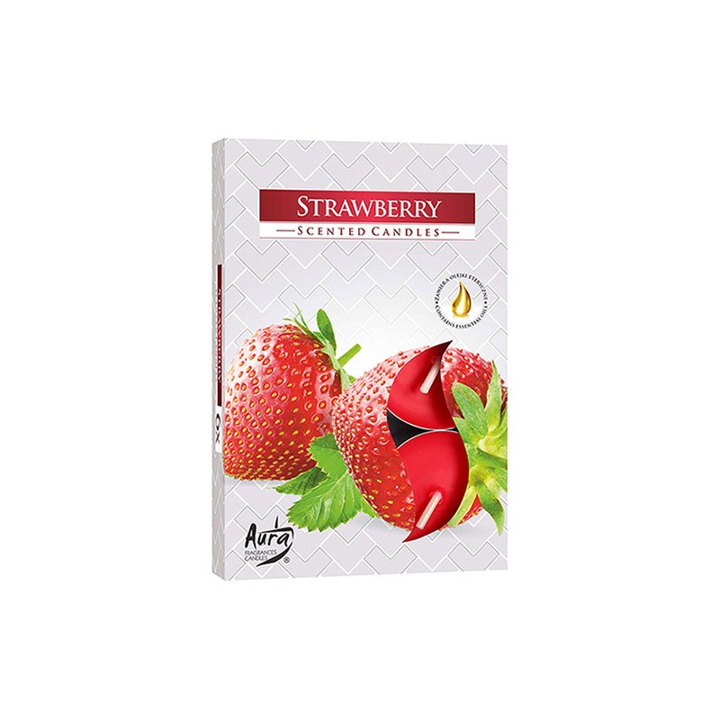 Set lumanari ornamentale parfumate Bispol Capsuni P15-73, 6 bucati