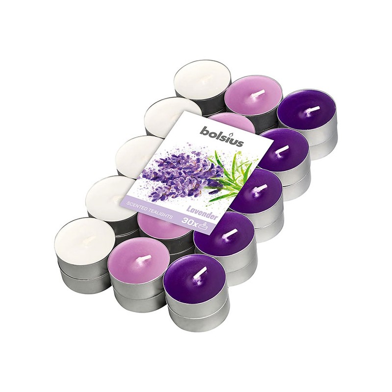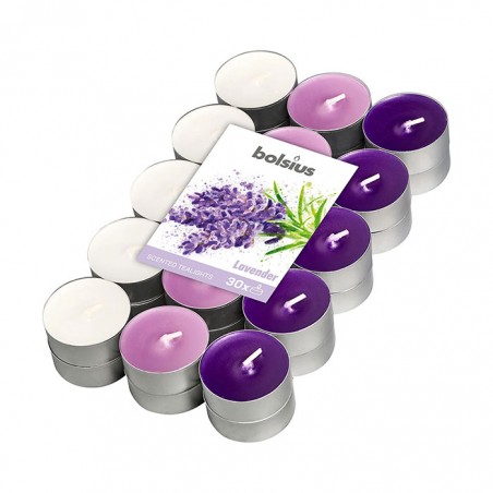 Lumanarea parfumata Bolsius Lavanda va asigura o atmosfera placuta si primitoare, datorita parfumului intens, cu aroma intensa de lavanda. Lumanarea are inaltimea de 1.5 cm si diametrul de 4 cm. Lumanarea are un aspect placut, datorita culorii parafinei. Lumanarea se poate utiliza pentru a improspata aerul atat in locuinta personala, cat si la birou, sau poate reprezenta un cadou potrivit in orice ocazie. Timpul de ardere al lumanarii este de aproximativ 4 ore si depinde de conditiile atmosferice si de modul de utilizare. Se recomanda utilizarea unui suport adecvat pentru lumanare si amplasarea acesteia in locuri sigure departe de obiecte care pot lua foc. Se recomanda a nu se lasa lumanarea la indemana copiilor sau in apropierea animalelor de companie. Se recomanda a se respecta instructiunile si simbolurile de pe eticheta. Produsul se livreaza amabalat in cutie, ce contine 30 lumanari in 3 nuante diferite.