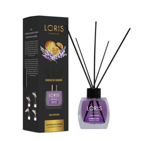 Sticluta cu odorizant lichid si betisoare, 125 ml, Loris Lavanda si citrice