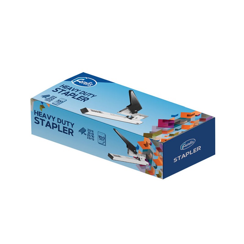 Capsator de mare capacitate, ce poate capsa pana la 100 coli. Baza capsatorului si mecanismul acestuia sunt realizate din otel, ceea ce garanteaza o rezistenta crescuta. Capsatorul este prevazut cu un mecanism practic de incarcare a capselor. Capsatorul functioneaza cu capse nr. 24/6, 23/10, 23/12, 23/13. Ambalare: 12 bucati/cutie.