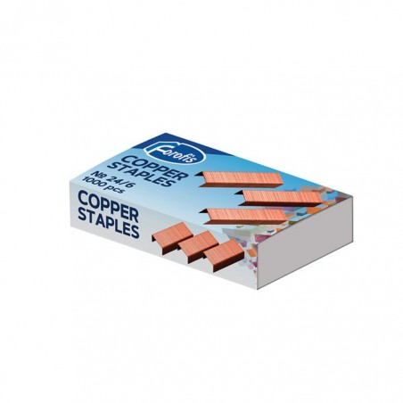 Capse nr. 24/6, pentru capsatoare de birou. Capsele sunt realizate din alama. Capacitatea de capsare este de 6 mm (aproximativ 25 coli). Capsele se livreaza ambalate in cutie de carton, cate 1000 bucati/cutie.