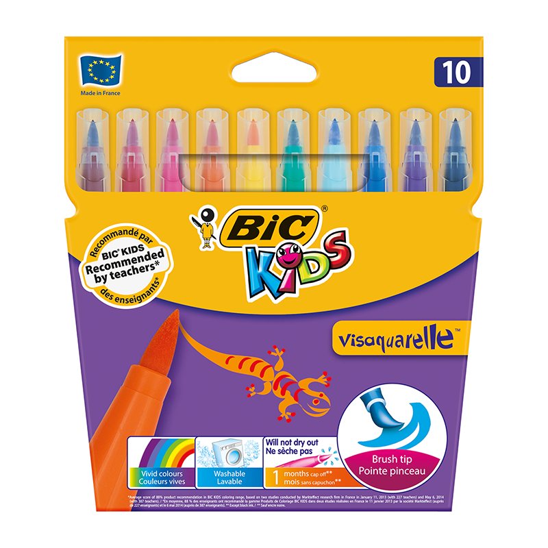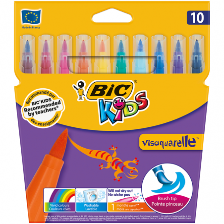 Carioca de foarte buna calitate, ideala pentru copii cu varste de peste 5 ani, pentru realizarea unor desene minunate in culori luminoase. Carioca are un varf extra flexibil, tip pensula, astfel desenele vor capata efecte deosebite. Carioca este dotata cu un capac ventilat. Cariocile sunt prevazute cu cerneala pe baza de apa, ce nu se usuca nici daca carioca este lasata fara capac, pana la o luna. Cerneala este lavabila de pe majoritatea materialelor textile. Produsul nu este toxic, respecta standardul european pentru jucarii (EN71) si este testat anual de un laborator independent. Cariocile se livreaza ambalate in cutie de carton, cate 10 culori diferite.