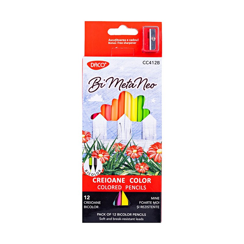 Creioane colorate 12 bucati, 48 culori, Daco Bi Meta Neo, CC412B