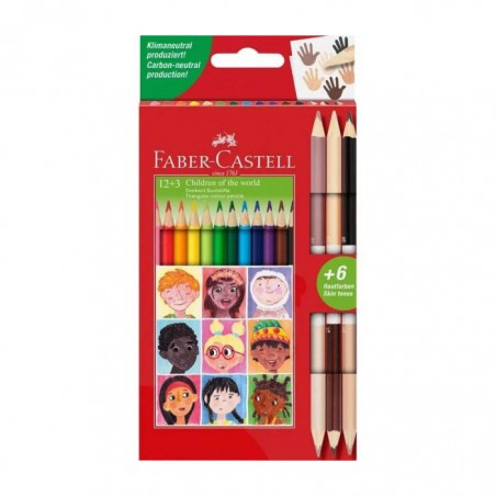 Creioane colorate 12 culori triunghiulare si 3 creioane bicolore cu 6 tonuri pentru nuanta pielii, Faber Castell FC511514