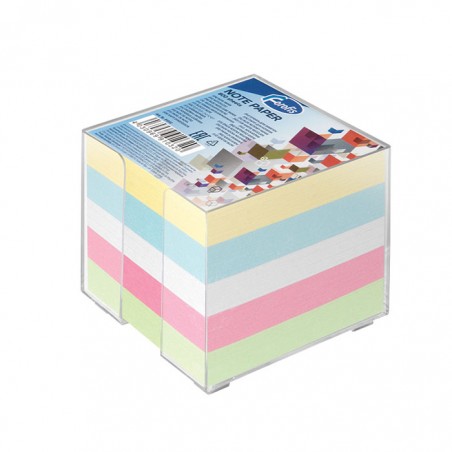Cub notite color, un produs indispensabil pentru munca de zi cu zi de la birou, ce poate fi folosit pentru notarea a diverse informatii, date importante sau scurte insemnari. Cubul contine un numar de 800 file astfel: 160 file de culoare verde pal, 160 de file de culoare roz pal, 160 de file de culoare albastru pal, 160 de file de culoare galben pal si 160 de file de culoare alba. Dimensiunile cubului sunt urmatoarele: 8.5 x8.5 cm.