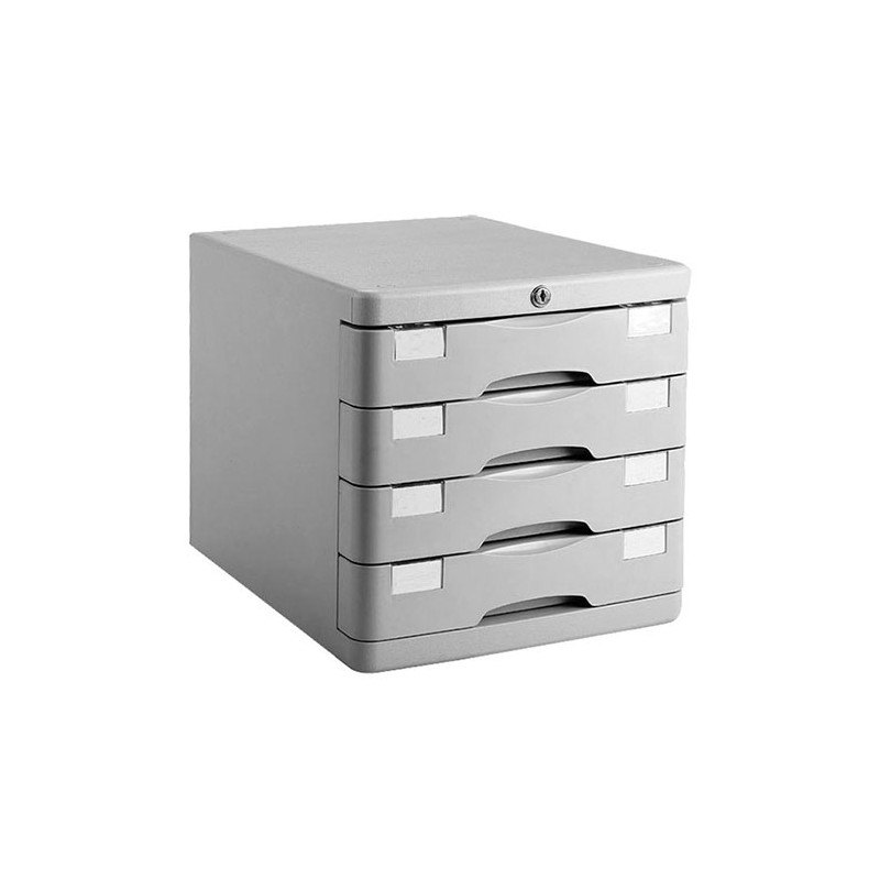 Cutie pentru organizarea usoara a documentelor, prevazuta cu 4 sertare. Cutia ajuta la clasificarea documentelor si, in plus, arata foarte bine pe orice birou. Cutia are un design modern si ergonomic, fiind realizata din plastic de calitate superioara, in culoarea gri. Sertarele functioneaza lin si silentios. Cutia este dotata cu cheie, pentru un control sporit asupra documentelor din interiorul acesteia. Dimensiunile cutiei sunt urmatoarele: 28.2x36.5x28.5 cm.