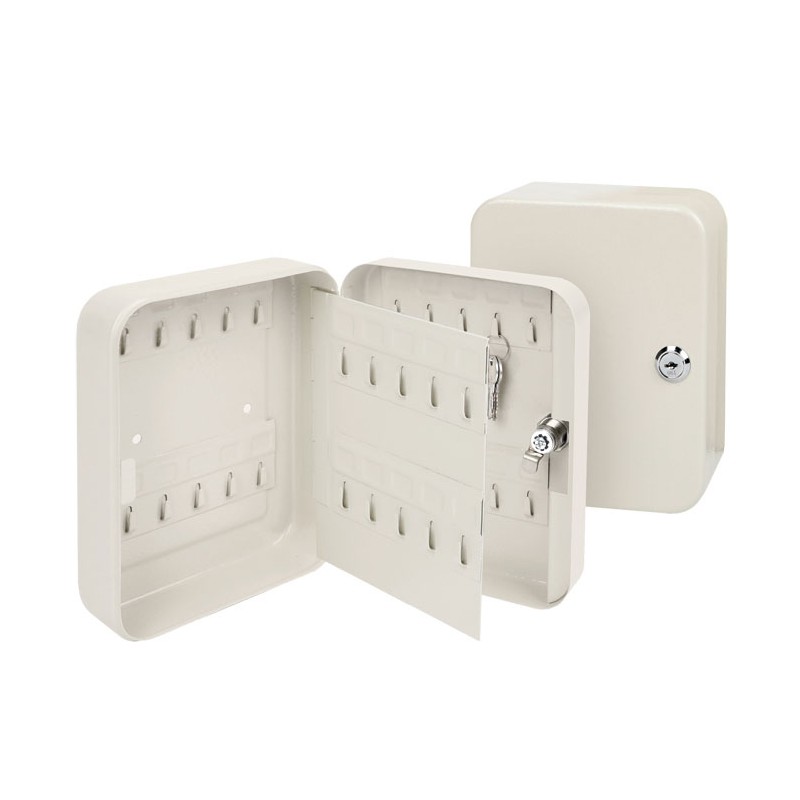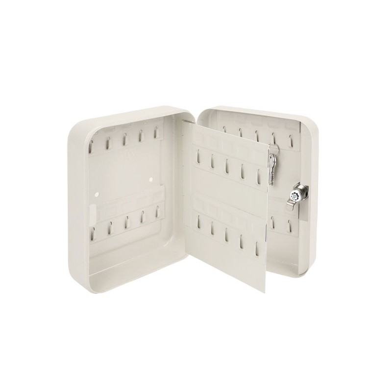Cutie din metal de culoare gri pentru pastrarea a 40 chei. In interiorul cutiei se regasesc pozitii numerotate. Cutia se inchide cu cheie. Cutia pentru chei poate fi dispusa pe perete. Dimensiunile cutiei pentru chei sunt urmatoarele: 200x160x74 mm. Ambalare: 8 bucati/cutie.