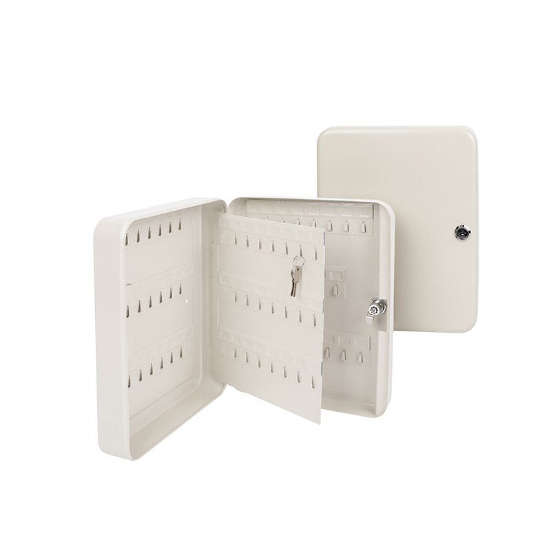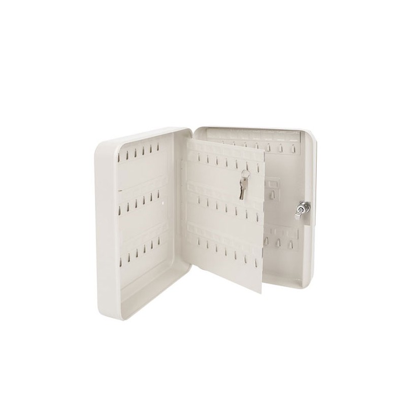 Cutie din metal de culoare gri pentru pastrarea a 60 chei. In interiorul cutiei se regasesc pozitii numerotate. Cutia se inchide cu cheie. Cutia pentru chei poate fi dispusa pe perete.