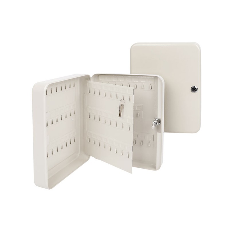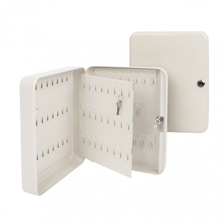 Cutie din metal de culoare gri pentru pastrarea a 80 chei. In interiorul cutiei se regasesc pozitii numerotate. Cutia se inchide cu cheie. Cutia pentru chei poate fi dispusa pe perete.