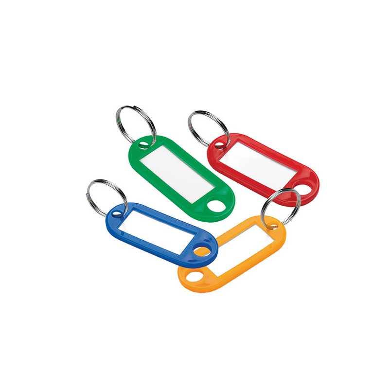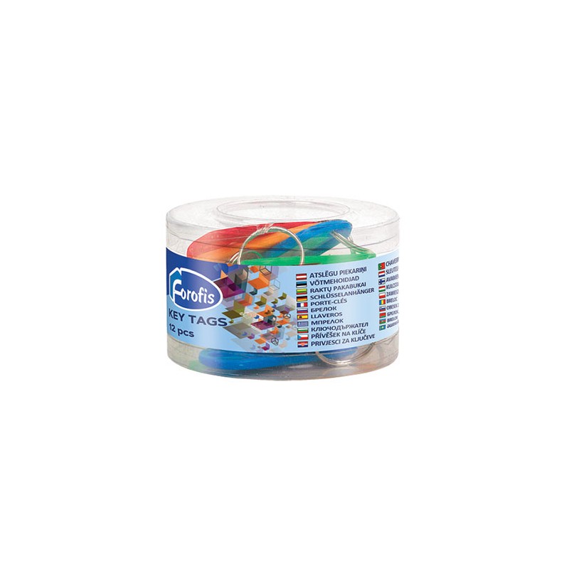 Suporturi pentru chei fabricate din material plastic, in culori asortate. Suportul este prevazut cu o fereasta transparenta pentru etichetare si cu un orificu pentru a putea fi agatate. Suporturile pentru chei se livreaza ambalate cate 12 bucati intr-o cutie transparenta de plastic.