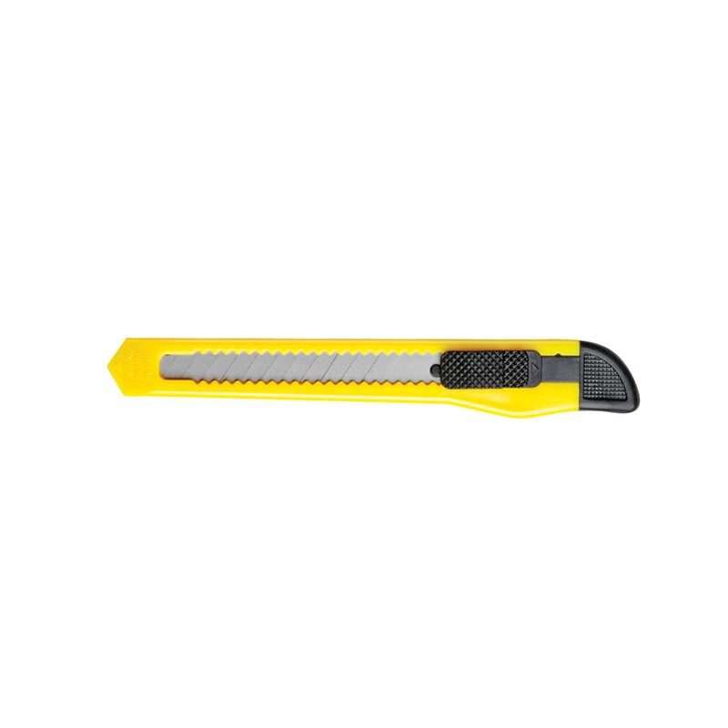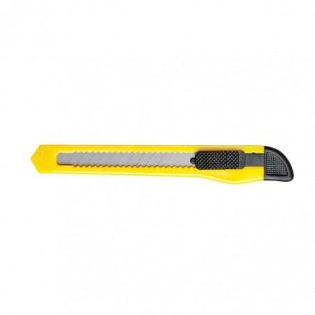 Cutter prevazut cu lama din otel inoxidabil. Cutterul contine un sistem de plastic de blocare a lamei, pentru o utilizare eficienta. Lamele au latimea de 9 mm si pot fi inlocuite dupa uzura. Corpul cutterului este realizat din plastic, de culoare galbena.