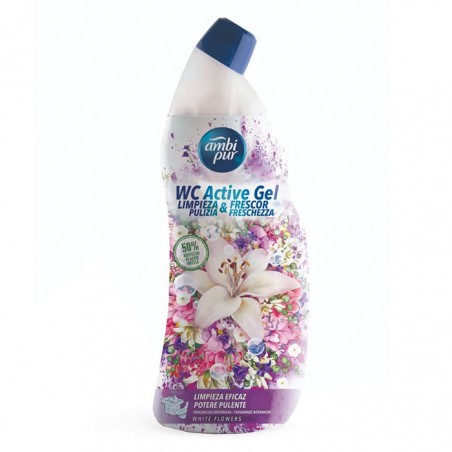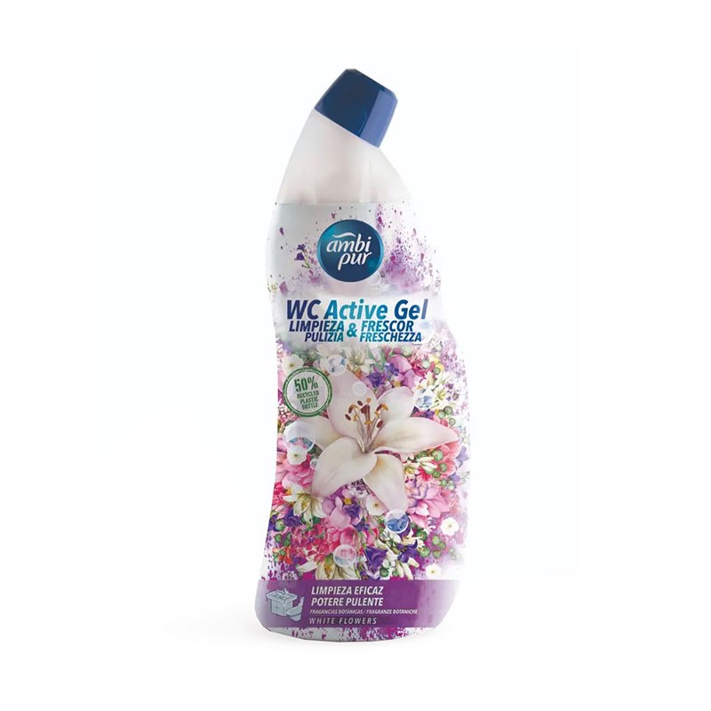 Solutia pentru curatat toaleta Active Gel Ambi Pur asigura o curatare igienica si stralucire, prevenind in acelasi timp cresterea excesiva a bacteriilor. Produsul indeparteaza depunerile de calcar si murdaria, oferind o prospetime de lunga durata. Consistenta de gel asigura o aderenta excelenta la suprafetele verticale ale vasulul de toaleta. Turnati produsul de curatat direct sub marginea vasului de toaleta. Lasati sa actioneze cateva minute, dupa care indepartati cu ajutorul periei. Produsul este ambalat in recipient de 700 ml.