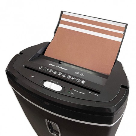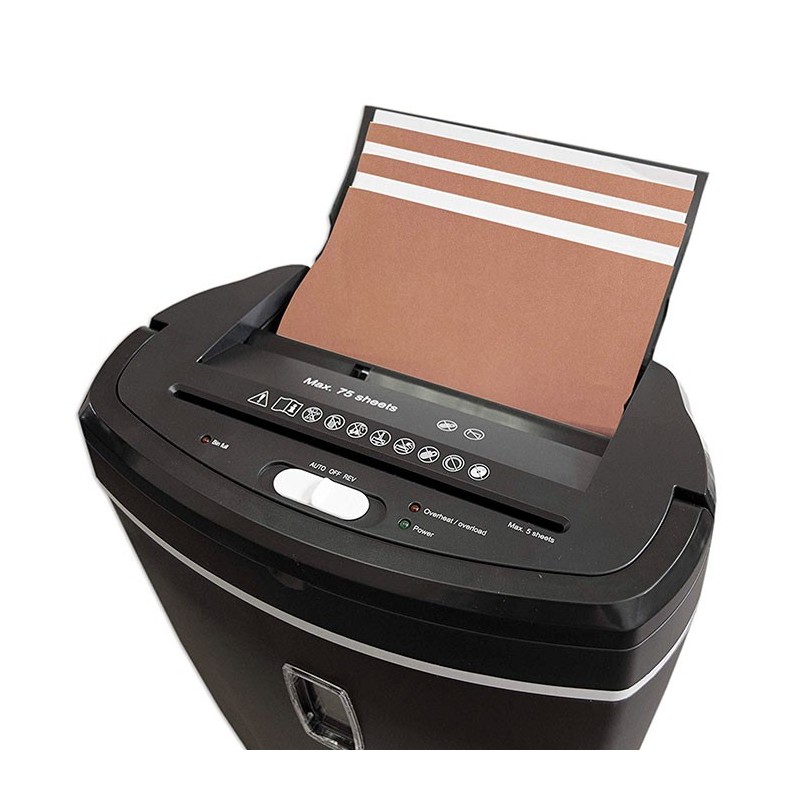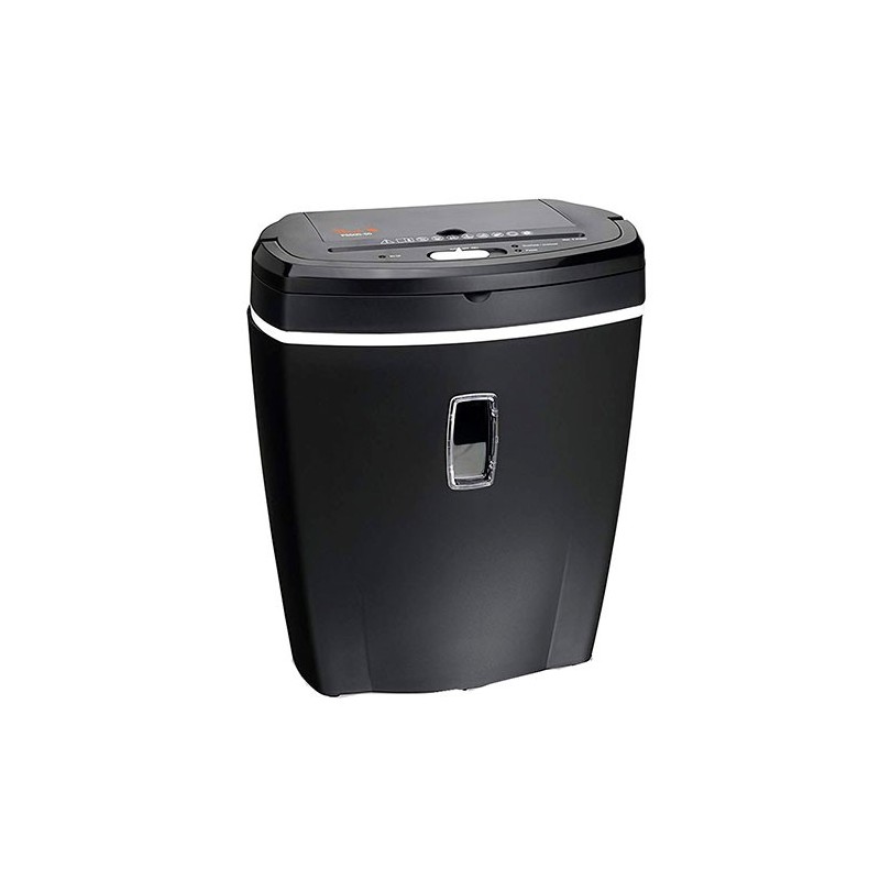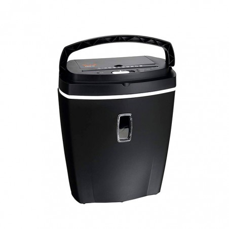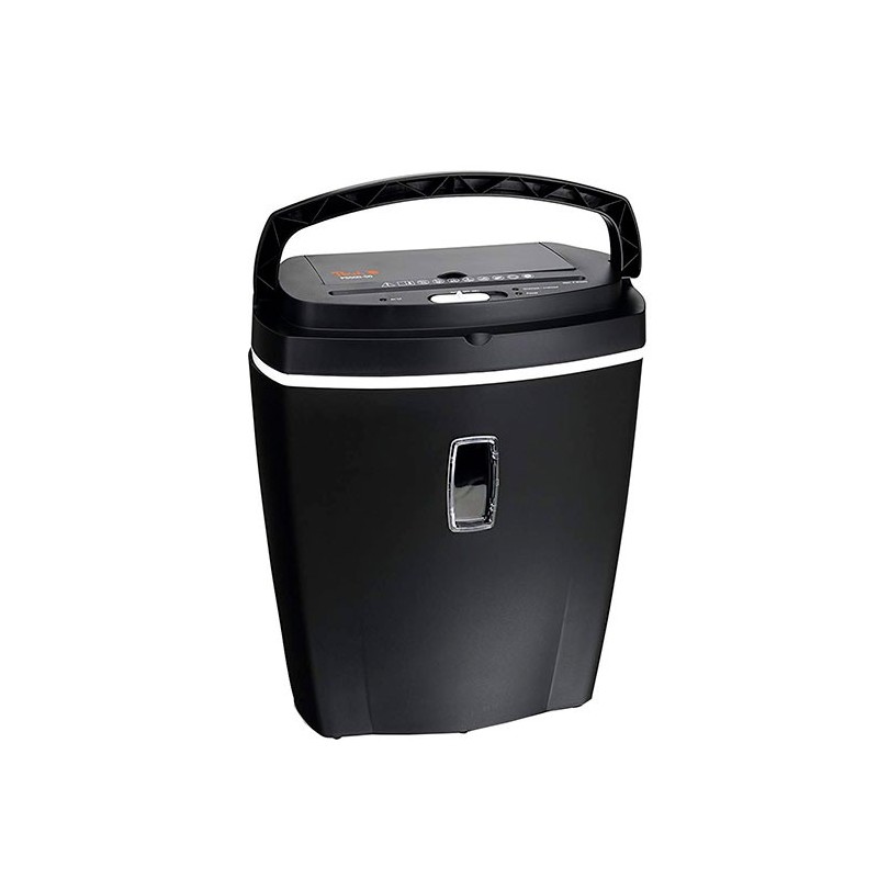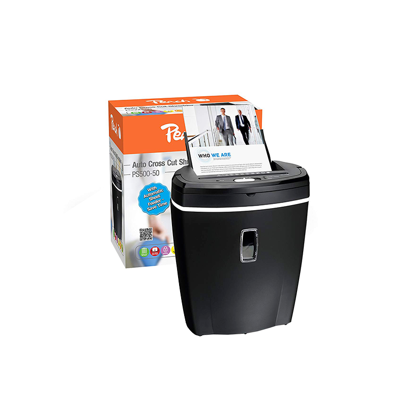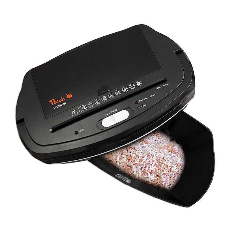 Distrugator de documente Peach PS500-50, un echipament eficient, cu deschidere de 230 mm, pentru utilizare moderata la birou sau acasa, fiind usor de folosit. Distrugatorul de documente realizeaza o taiere tip confetti (cross-cut), care asigura un nivel de securitate DIN P-4, potrivit pentru documente confidentiale, greu de asamblat si citit. Dimensiunea particulei: 4x32 mm. Numar de particule pe o coala A4: aproximativ 487. Capacitatea de taiere este de 6 coli cu o grosime de 70 g/mp, folosind modul de alimentare manuala. Distrugatorul este dotat o tehnologie inovatoare de tocare automata, ceea ce va permite sa alimentati aparatul cu pana la 80 de coli cu o grosime de 70 g/mp si sa va continuati munca, in timp ce distrugatorul lucreaza. Distruge atat hartie, cat si capse. Peach PS500-50 este prevazut cu un sistem de protectie impotriva supraincalzirii, precum si cu functia reverse pentru eliminarea blocajelor. Distrugatorul dispune de un cos de deseuri, cu fereastra, pentru vizualizarea nivelului de incarcare cu particule. Distrugatorul se opreste automat cand cosul de o capacitate de 21 litri este plin. Dimensiunile exterioare ale distrugatorului de documente sunt urmatoarele: 430x350x210 mm.