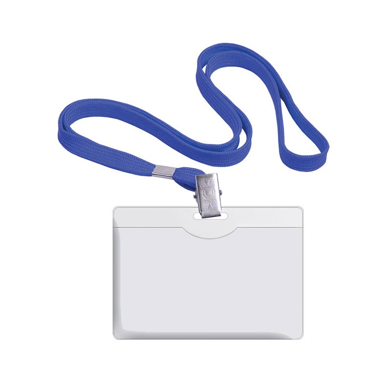 Ecuson orizontal, realizat din material plastic transparent, flexibil. Ecusonul este prevazut cu un snur moale, de culoare albastra. Dimensiunile ferestrei ecusonului sunt urmatoarele: 58x90 mm. Lungimea snurului este de 42 cm.
