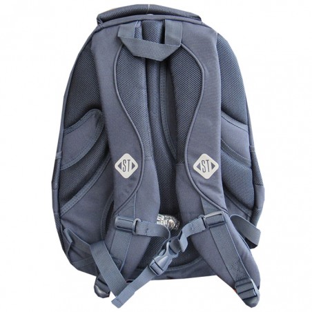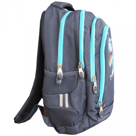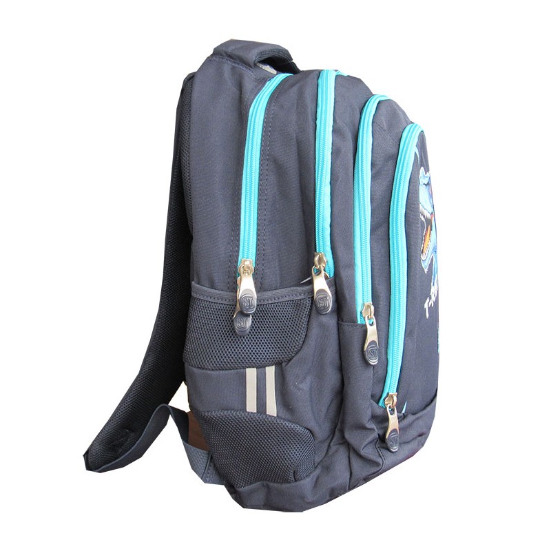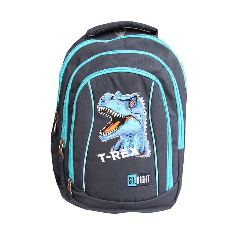 Ghiozdan prevazut cu 4 compartimente, Majewski, Gama St. Right, Colectia Blue T-Rex, un ghiozdan modern si confortabil, de foarte buna calitate, finisat si decorat cu tehnologii avansate. Ghiozdanul este confectionat din materiale impermeabile, rezistente la uzura si inghet. Ghiozdanul este deosebit de incapator, cu o compartimentare excelenta, avand spatii pentru carti, caiete, accesorii si rechizite, asigurand astfel o foarte buna organizare. Prevazut cu un compartiment principal ce se inchide cu doua fermoare si trei compartimente frontale ce se inchid cu fermoar, ghiozdanul este deosebit de incapator si practic. Unul din compartimentele frontale se inchide cu 2 fermoare. Compartimentul principal al ghiozdanului este dotat cu un buzunar special captusit cu fleece pentru a pastra telefonul sau castile, un spatiu pentru personalizare (destinat pentru a nota numele, numarul de telefon si adresa de e-mail) si o iesire pentru casti. Unul din compartimentele frontale este dotat cu un buzunar pentru accesoriile telefonului, laptopului sau tabletei, precum alimentatoare, cabluri, mouse sau altele. Celalalt compartiment frontal este dotat cu mai multe separatoare interioare (destinate articolelor precum chei, bani, memory-stick-uri, accesorii telefon, instrumente de scris sau alte obiecte importante de mici dimensiuni), precum si cu un breloc detasabil pentru cheie. Ghiozdanul are doua buzunare laterale, ideale pentru a pastra recipientul cu apa. Ghiozdanul este dotat cu elemente reflectorizante pe laterale si pe bretele. Ghiozdanul este prevazut cu un maner buretat pentru a putea fi purtat si in mana. Spatele si bretelele sunt intarite si buretate cu un burete gros, oferindu-le fermitate si avand rolul de a proteja umerii si spatele. Spatele ghiozdanului este buretat ergonomic, dotat cu o zona de contact cu plasa, pentru o buna circulatie a aerului. Bretelele ghiozdanului sunt ajustabile, pentru ca acesta sa poata fi aranjat perfect pe spate. Fermoarele au zona de prindere cauciucata si profilata, pentru prindere usoara. Cheitele fermoarului compartimentului principal permit utilizarea unui lacat sau a unei criptari TSA. Baza ghiozdanului are zone de contact cauciucate pentru protejare la umezeala. Dimensiunile ghiozdanului sunt urmatoarele: 43x32x16 cm.