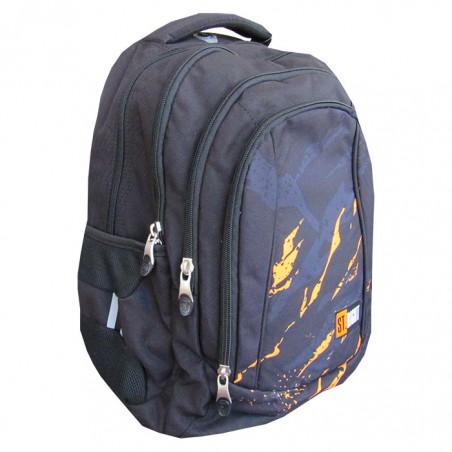 Ghiozdan prevazut cu 4 compartimente, Majewski, Gama St. Right, Colectia Lava, un ghiozdan modern si confortabil, de foarte buna calitate, finisat si decorat cu tehnologii avansate. Ghiozdanul este confectionat din materiale impermeabile, rezistente la uzura si inghet. Ghiozdanul este deosebit de incapator, cu o compartimentare excelenta, avand spatii pentru carti, caiete, accesorii si rechizite, asigurand astfel o foarte buna organizare. Prevazut cu un compartiment principal ce se inchide cu doua fermoare si trei compartimente frontale ce se inchid cu fermoar, ghiozdanul este deosebit de incapator si practic. Unul din compartimentele frontale se inchide cu 2 fermoare. Compartimentul principal al ghiozdanului este dotat cu un buzunar special captusit cu fleece pentru a pastra telefonul sau castile, un spatiu pentru personalizare (destinat pentru a nota numele, numarul de telefon si adresa de e-mail) si o iesire pentru casti. Unul din compartimentele frontale este dotat cu un buzunar pentru accesoriile telefonului, laptopului sau tabletei, precum alimentatoare, cabluri, mouse sau altele. Celalalt compartiment frontal este dotat cu mai multe separatoare interioare (destinate articolelor precum chei, bani, memory-stick-uri, accesorii telefon, instrumente de scris sau alte obiecte importante de mici dimensiuni), precum si cu un breloc detasabil pentru cheie. Ghiozdanul are doua buzunare laterale, ideale pentru a pastra recipientul cu apa. Ghiozdanul este dotat cu elemente reflectorizante pe laterale si pe bretele. Ghiozdanul este prevazut cu un maner buretat pentru a putea fi purtat si in mana. Spatele si bretelele sunt intarite si buretate cu un burete gros, oferindu-le fermitate si avand rolul de a proteja umerii si spatele. Spatele ghiozdanului este buretat ergonomic, dotat cu o zona de contact cu plasa, pentru o buna circulatie a aerului. Bretelele ghiozdanului sunt ajustabile, pentru ca acesta sa poata fi aranjat perfect pe spate. Fermoarele au zona de prindere cauciucata si profilata, pentru prindere usoara. Cheitele fermoarului compartimentului principal permit utilizarea unui lacat sau a unei criptari TSA. Baza ghiozdanului are zone de contact cauciucate pentru protejare la umezeala. Dimensiunile ghiozdanului sunt urmatoarele: 43x32x16 cm.