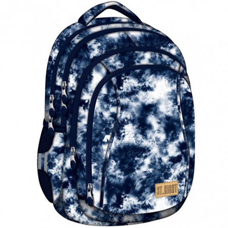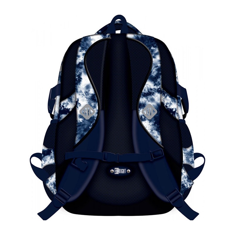 Ghiozdan prevazut cu 4 compartimente, Majewski, Gama St. Right, Colectia Stormy Sky, un ghiozdan modern si confortabil, de foarte buna calitate, finisat si decorat cu tehnologii avansate. Ghiozdanul este confectionat din materiale impermeabile, rezistente la uzura si inghet. Ghiozdanul este deosebit de incapator, cu o compartimentare excelenta, avand spatii pentru carti, caiete, accesorii si rechizite, asigurand astfel o foarte buna organizare. Prevazut cu un compartiment principal ce se inchide cu doua fermoare si trei compartimente frontale ce se inchid cu fermoar, ghiozdanul este deosebit de incapator si practic. Unul din compartimentele frontale se inchide cu 2 fermoare. Compartimentul principal al ghiozdanului este dotat cu un buzunar special captusit cu fleece pentru a pastra telefonul sau castile, un spatiu pentru personalizare (destinat pentru a nota numele, numarul de telefon si adresa de e-mail) si o iesire pentru casti. Unul din compartimentele frontale este dotat cu un buzunar pentru accesoriile telefonului, laptopului sau tabletei, precum alimentatoare, cabluri, mouse sau altele. Celalalt compartiment frontal este dotat cu mai multe separatoare interioare (destinate articolelor precum chei, bani, memory-stick-uri, accesorii telefon, instrumente de scris sau alte obiecte importante de mici dimensiuni), precum si cu un breloc detasabil pentru cheie. Ghiozdanul are doua buzunare laterale, ideale pentru a pastra recipientul cu apa. Ghiozdanul este dotat cu elemente reflectorizante pe laterale si pe bretele. Ghiozdanul este prevazut cu un maner buretat pentru a putea fi purtat si in mana. Spatele si bretelele sunt intarite si buretate cu un burete gros, oferindu-le fermitate si avand rolul de a proteja umerii si spatele. Spatele ghiozdanului este buretat ergonomic, dotat cu o zona de contact cu plasa, pentru o buna circulatie a aerului. Bretelele ghiozdanului sunt ajustabile, pentru ca acesta sa poata fi aranjat perfect pe spate. Fermoarele au zona de prindere cauciucata si profilata, pentru prindere usoara. Cheitele fermoarului compartimentului principal permit utilizarea unui lacat sau a unei criptari TSA. Baza ghiozdanului are zone de contact cauciucate pentru protejare la umezeala. Dimensiunile ghiozdanului sunt urmatoarele: 43x32x16 cm.