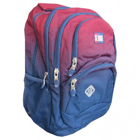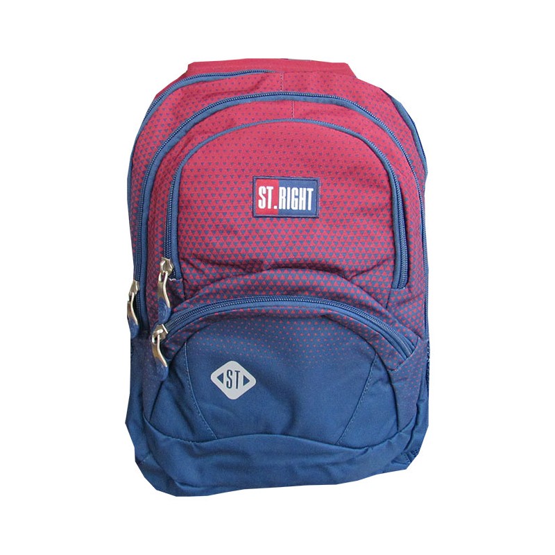 Ghiozdan Majewski Gama St. Right, Colectia Burgund Gradient, un ghiozdan modern si confortabil, de foarte buna calitate, finisat si decorat cu tehnologii avansate. Ghiozdanul este confectionat din materiale impermeabile, rezistente la uzura si inghet. Ghiozdanul este deosebit de incapator, cu o compartimentare excelenta, avand spatii pentru carti, caiete, accesorii si rechizite, asigurand astfel o foarte buna organizare. Prevazut cu doua compartimente principale ce se inchid cu doua fermoare si trei compartimente frontale ce se inchid cu fermoar, ghiozdanul este deosebit de spatios si practic. Compartimentul principal al ghiozdanului este dotat cu un buzunar special captusit cu fleece pentru a pastra telefonul sau castile, un spatiu pentru personalizare (destinat pentru a nota numele, numarul de telefon si adresa de e-mail) si o iesire pentru casti. Unul din compartimentele frontale ale ghiozdanului este dotat cu mai multe separatoare interioare (destinate articolelor precum chei, bani, memory-stick-uri, accesorii telefon, instrumente de scris sau alte obiecte importante de mici dimensiuni), precum si cu un breloc detasabil pentru cheie. Celalalt compartiment frontal este dotat cu un buzunar pentru accesoriile telefonului, laptopului sau tabletei, precum alimentatoare, cabluri, mouse sau altele. Ghiozdanul este prevazut cu doua buzunare laterale cu elastic, ideale pentru a pastra recipientul cu apa. Ghiozdanul este prevazut cu un maner buretat pentru a putea fi purtat si in mana. Spatele si bretelele sunt intarite si buretate cu un burete gros, oferindu-le fermitate si avand rolul de a proteja umerii si spatele. Spatele ghiozdanului este buretat ergonomic, dotat cu o zona de contact cu plasa, pentru o buna circulatie a aerului. Bretelele ghiozdanului sunt ajustabile, pentru ca acesta sa poata fi aranjat perfect pe spate. Ghiozdanul este prevazut cu elemente reflectorizante pe partea din fata. Fermoarele au zona de prindere plastifiata si profilata, pentru prindere usoara. Cheitele fermoarului compartimentului principal permit utilizarea unui lacat sau a unei criptari TSA. Dimensiunile ghiozdanului sunt urmatoarele: 42x30x17 cm.