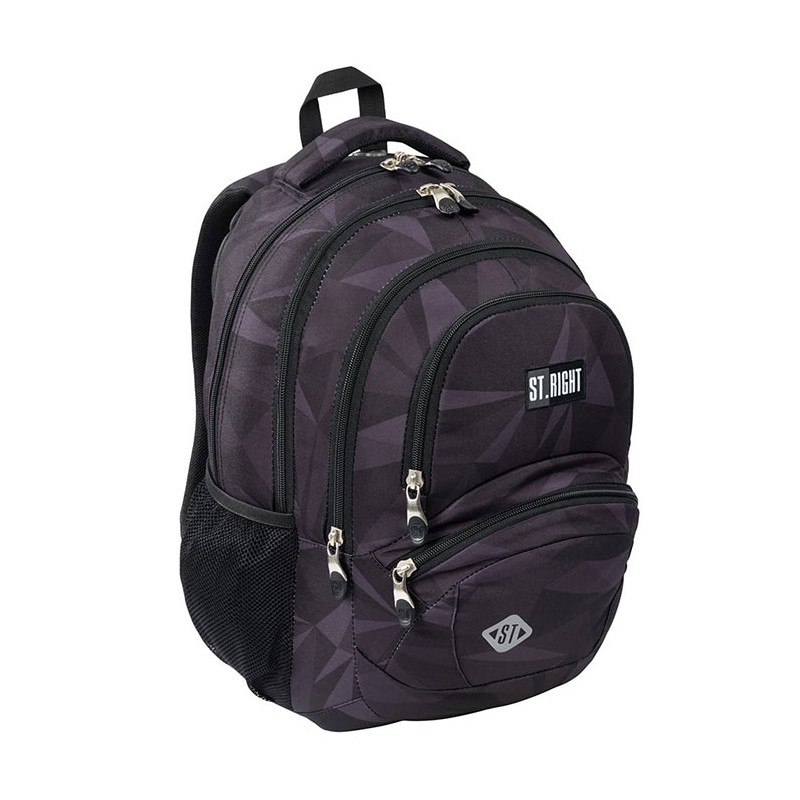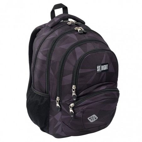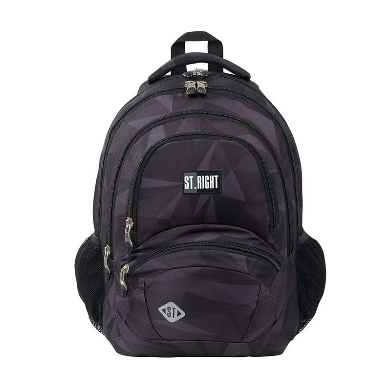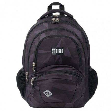 Ghiozdan Majewski Gama St. Right, Colectia Geometric Grey, un ghiozdan modern si confortabil, de foarte buna calitate, finisat si decorat cu tehnologii avansate. Ghiozdanul este confectionat din materiale impermeabile, rezistente la uzura si inghet. Ghiozdanul este deosebit de incapator, cu o compartimentare excelenta, avand spatii pentru carti, caiete, accesorii si rechizite, asigurand astfel o foarte buna organizare. Prevazut cu doua compartimente principale ce se inchid cu doua fermoare si trei compartimente frontale ce se inchid cu fermoar, ghiozdanul este deosebit de spatios si practic. Compartimentul principal al ghiozdanului este dotat cu un buzunar special captusit cu fleece pentru a pastra telefonul sau castile, un spatiu pentru personalizare (destinat pentru a nota numele, numarul de telefon si adresa de e-mail) si o iesire pentru casti. Unul din compartimentele frontale ale ghi-ozdanului este dotat cu mai multe separatoare interioare (destinate articolelor precum chei, bani, memory-stick-uri, accesorii telefon, instrumente de scris sau alte obiecte importante de mici di-mensiuni), precum si cu un breloc detasabil pentru cheie. Celalalt compartiment frontal este dotat cu un buzunar pentru accesoriile telefonului, laptopului sau tabletei, precum alimentatoare, cabluri, mouse sau altele. Ghiozdanul este prevazut cu doua buzunare laterale cu elastic, ideale pentru a pas-tra recipientul cu apa. Ghiozdanul este prevazut cu un maner buretat pentru a putea fi purtat si in mana. Spatele si bretelele sunt intarite si buretate cu un burete gros, oferindu-le fermitate si avand rolul de a proteja umerii si spatele. Spatele ghiozdanului este buretat ergonomic, dotat cu o zona de contact cu plasa, pentru o buna circulatie a aerului. Bretelele ghiozdanului sunt ajustabile, pentru ca acesta sa poata fi aranjat perfect pe spate. Ghiozdanul este prevazut cu elemente reflectorizante pe partea din fata. Fermoarele au zona de prindere plastifiata si profilata, pentru prindere usoara. Cheitele fermoarului compartimentului principal permit utilizarea unui lacat sau a unei criptari TSA. Dimensiunile ghiozdanului sunt urmatoarele: 42x30x17 cm.