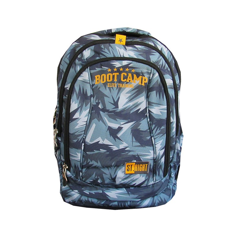 Ghiozdan prevazut cu 4 compartimente, Majewski, Gama St. Right, Colectia Boot Camp, un ghiozdan modern si confortabil, de foarte buna calitate, finisat si decorat cu tehnologii avansate. Ghiozdanul este confectionat din materiale impermeabile, rezistente la uzura si inghet. Ghiozdanul este deosebit de incapator, cu o compartimentare excelenta, avand spatii pentru carti, caiete, accesorii si rechizite, asigurand astfel o foarte buna organizare. Prevazut cu un compartiment principal ce se inchide cu doua fermoare si trei compartimente frontale ce se inchid cu fermoar, ghiozdanul este deosebit de incapator si practic. Unul din compartimentele frontale se inchide cu 2 fermoare. Compartimentul principal al ghiozdanului este dotat cu un buzunar special captusit cu fleece pentru a pastra telefonul sau castile, un spatiu pentru personalizare (destinat pentru a nota numele, numarul de telefon si adresa de e-mail) si o iesire pentru casti. Unul din compartimentele frontale este dotat cu un buzunar pentru accesoriile telefonului, laptopului sau tabletei, precum alimentatoare, cabluri, mouse sau altele. Celalalt compartiment frontal este dotat cu mai multe separatoare interioare (destinate articolelor precum chei, bani, memory-stick-uri, accesorii telefon, instrumente de scris sau alte obiecte importante de mici dimensiuni), precum si cu un breloc detasabil pentru cheie. Ghiozdanul are doua buzunare laterale, ideale pentru a pastra recipientul cu apa. Ghiozdanul este dotat cu elemente reflectorizante pe laterale si pe bretele. Ghiozdanul este prevazut cu un maner buretat pentru a putea fi purtat si in mana. Spatele si bretelele sunt intarite si buretate cu un burete gros, oferindu-le fermitate si avand rolul de a proteja umerii si spatele. Spatele ghiozdanului este buretat ergonomic, dotat cu o zona de contact cu plasa, pentru o buna circulatie a aerului. Bretelele ghiozdanului sunt ajustabile, pentru ca acesta sa poata fi aranjat perfect pe spate. Fermoarele au zona de prindere cauciucata si profilata, pentru prindere usoara. Cheitele fermoarului compartimentului principal permit utilizarea unui lacat sau a unei criptari TSA. Baza ghiozdanului are zone de contact cauciucate pentru protejare la umezeala. Dimensiunile ghiozdanului sunt urmatoarele: 43x32x16 cm.