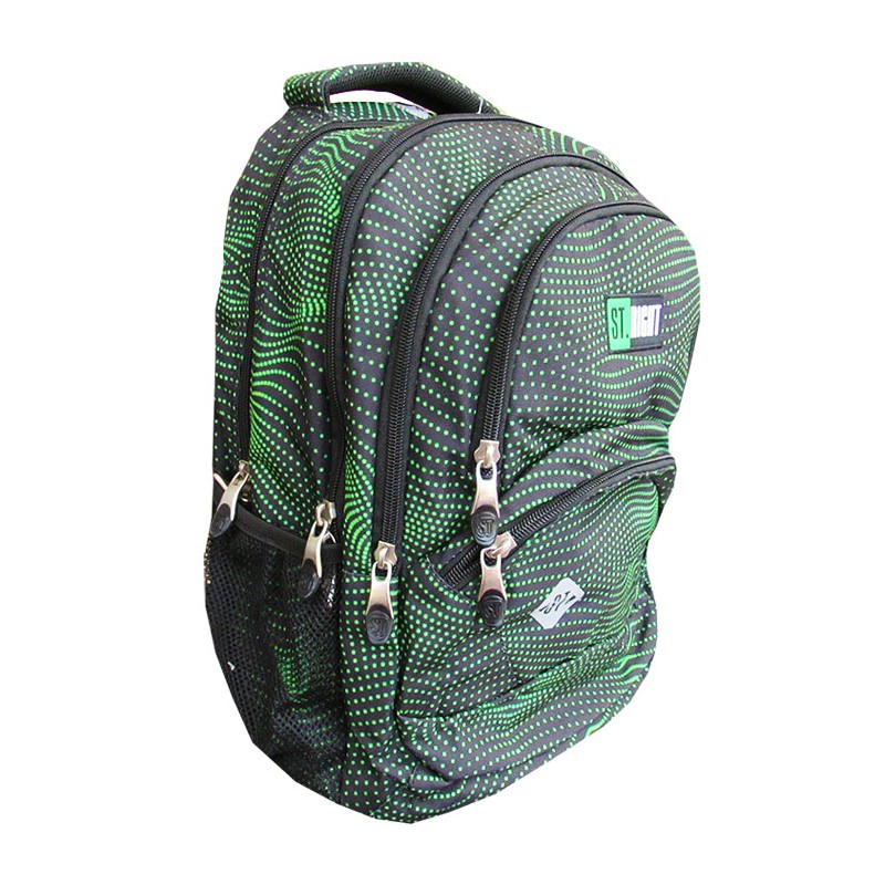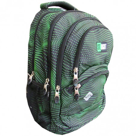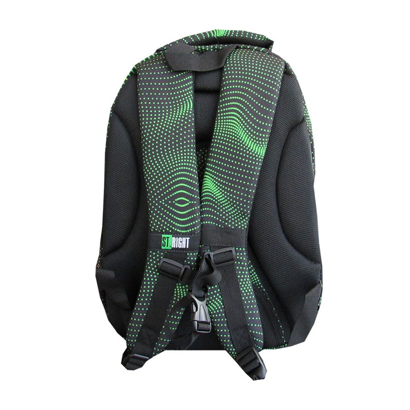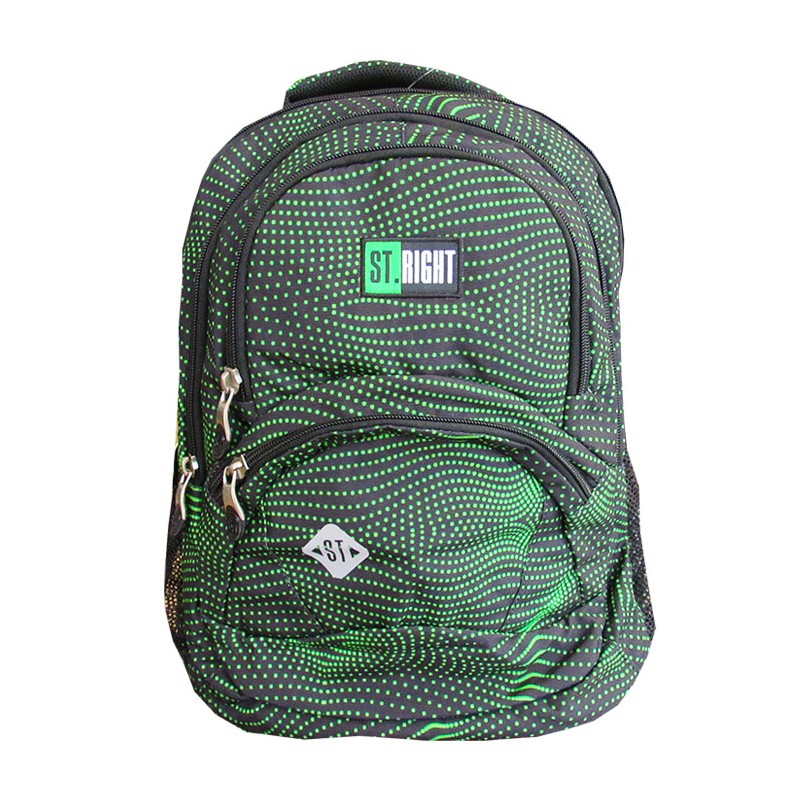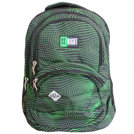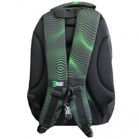 Ghiozdan Majewski Gama St. Right, Colectia Green Halftone, un ghiozdan modern si confortabil, de foarte buna calitate, finisat si decorat cu tehnologii avansate. Ghiozdanul este confectionat din materiale impermeabile, rezistente la uzura si inghet. Ghiozdanul este deosebit de incapator, cu o compartimentare excelenta, avand spatii pentru carti, caiete, accesorii si rechizite, asigurand astfel o foarte buna organizare. Prevazut cu doua compartimente principale ce se inchid cu doua fermoare si trei compartimente frontale ce se inchid cu fermoar, ghiozdanul este deosebit de spatios si practic. Compartimentul principal al ghiozdanului este dotat cu un buzunar special captusit cu fleece pentru a pastra telefonul sau castile, un spatiu pentru personalizare (destinat pentru a nota numele, numarul de telefon si adresa de e-mail) si o iesire pentru casti. Unul din compartimentele frontale ale ghiozdanului este dotat cu mai multe separatoare interioare (destinate articolelor precum chei, bani, memory-stick-uri, accesorii telefon, instrumente de scris sau alte obiecte importante de mici dimensiuni), precum si cu un breloc detasabil pentru cheie. Celalalt compartiment frontal este dotat cu un buzunar pentru accesoriile telefonului, laptopului sau tabletei, precum alimentatoare, cabluri, mouse sau altele. Ghiozdanul este prevazut cu doua buzunare laterale cu elastic, ideale pentru a pastra recipientul cu apa. Ghiozdanul este prevazut cu un maner buretat pentru a putea fi purtat si in mana. Spatele si bretelele sunt intarite si buretate cu un burete gros, oferindu-le fermitate si avand rolul de a proteja umerii si spatele. Spatele ghiozdanului este buretat ergonomic, dotat cu o zona de contact cu plasa, pentru o buna circulatie a aerului. Bretelele ghiozdanului sunt ajustabile, pentru ca acesta sa poata fi aranjat perfect pe spate. Ghiozdanul este prevazut cu elemente reflectorizante pe partea din fata. Fermoarele au zona de prindere plastifiata si profilata, pentru prindere usoara. Cheitele fermoarului compartimentului principal permit utilizarea unui lacat sau a unei criptari TSA. Dimensiunile ghiozdanului sunt urmatoarele: 42x30x17 cm.
