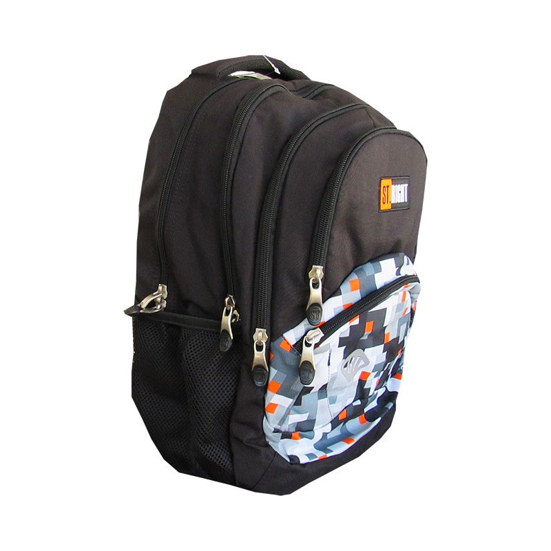 Ghiozdan Majewski Gama St. Right, Colectia Pixels, un ghiozdan modern si confortabil, de foarte buna calitate, finisat si decorat cu tehnologii avansate. Ghiozdanul este confectionat din materiale impermeabile, rezistente la uzura si inghet. Ghiozdanul este deosebit de incapator, cu o compartimentare excelenta, avand spatii pentru carti, caiete, accesorii si rechizite, asigurand astfel o foarte buna organizare. Prevazut cu doua compartimente principale ce se inchid cu doua fermoare si trei compartimente frontale ce se inchid cu fermoar, ghiozdanul este deosebit de spatios si practic. Compartimentul principal al ghiozdanului este dotat cu un buzunar special captusit cu fleece pentru a pastra telefonul sau castile, un spatiu pentru personalizare (destinat pentru a nota numele, numarul de telefon si adresa de e-mail) si o iesire pentru casti. Unul din compartimentele frontale ale ghiozdanului este dotat cu mai multe separatoare interioare (destinate articolelor precum chei, bani, memory-stick-uri, accesorii telefon, instrumente de scris sau alte obiecte importante de mici dimensiuni), precum si cu un breloc detasabil pentru cheie. Celalalt compartiment frontal este dotat cu un buzunar pentru accesoriile telefonului, laptopului sau tabletei, precum alimentatoare, cabluri, mouse sau altele. Ghiozdanul este prevazut cu doua buzunare laterale cu elastic, ideale pentru a pastra recipientul cu apa. Ghiozdanul este prevazut cu un maner buretat pentru a putea fi purtat si in mana. Spatele si bretelele sunt intarite si buretate cu un burete gros, oferindu-le fermitate si avand rolul de a proteja umerii si spatele. Spatele ghiozdanului este buretat ergonomic, dotat cu o zona de contact cu plasa, pentru o buna circulatie a aerului. Bretelele ghiozdanului sunt ajustabile, pentru ca acesta sa poata fi aranjat perfect pe spate. Ghiozdanul este prevazut cu elemente reflectorizante pe partea din fata. Fermoarele au zona de prindere plastifiata si profilata, pentru prindere usoara. Cheitele fermoarului compartimentului principal permit utilizarea unui lacat sau a unei criptari TSA. Dimensiunile ghiozdanului sunt urmatoarele: 42x30x17 cm.
