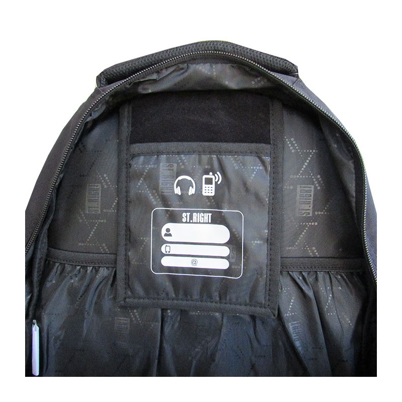 Ghiozdan Majewski Gama St. Right, Colectia St. Black, un ghiozdan modern si confortabil, de foarte buna calitate, finisat si decorat cu tehnologii avansate. Ghiozdanul este confectionat din materiale impermeabile, rezistente la uzura si inghet. Ghiozdanul este deosebit de incapator, cu o compartimentare excelenta, avand spatii pentru carti, caiete, accesorii si rechizite, asigurand astfel o foarte buna organizare. Prevazut cu doua compartimente principale ce se inchid cu doua fermoare si trei compartimente frontale ce se inchid cu fermoar, ghiozdanul este deosebit de spatios si practic. Compartimentul principal al ghiozdanului este dotat cu un buzunar special captusit cu fleece pentru a pastra telefonul sau castile, un spatiu pentru personalizare (destinat pentru a nota numele, numarul de telefon si adresa de e-mail) si o iesire pentru casti. Unul din compartimentele frontale ale ghiozdanului este dotat cu mai multe separatoare interioare (destinate articolelor precum chei, bani, memory-stick-uri, accesorii telefon, instrumente de scris sau alte obiecte importante de mici dimensiuni), precum si cu un breloc detasabil pentru cheie. Celalalt compartiment frontal este dotat cu un buzunar pentru accesoriile telefonului, laptopului sau tabletei, precum alimentatoare, cabluri, mouse sau altele. Ghiozdanul este prevazut cu doua buzunare laterale cu elastic, ideale pentru a pastra recipientul cu apa. Ghiozdanul este prevazut cu un maner buretat pentru a putea fi purtat si in mana. Spatele si bretelele sunt intarite si buretate cu un burete gros, oferindu-le fermitate si avand rolul de a proteja umerii si spatele. Spatele ghiozdanului este buretat ergonomic, dotat cu o zona de contact cu plasa, pentru o buna circulatie a aerului. Bretelele ghiozdanului sunt ajustabile, pentru ca acesta sa poata fi aranjat perfect pe spate. Ghiozdanul este prevazut cu elemente reflectorizante pe partea din fata. Fermoarele au zona de prindere plastifiata si profilata, pentru prindere usoara. Cheitele fermoarului compartimentului principal permit utilizarea unui lacat sau a unei criptari TSA. Dimensiunile ghiozdanului sunt urmatoarele: 42x30x17 cm.